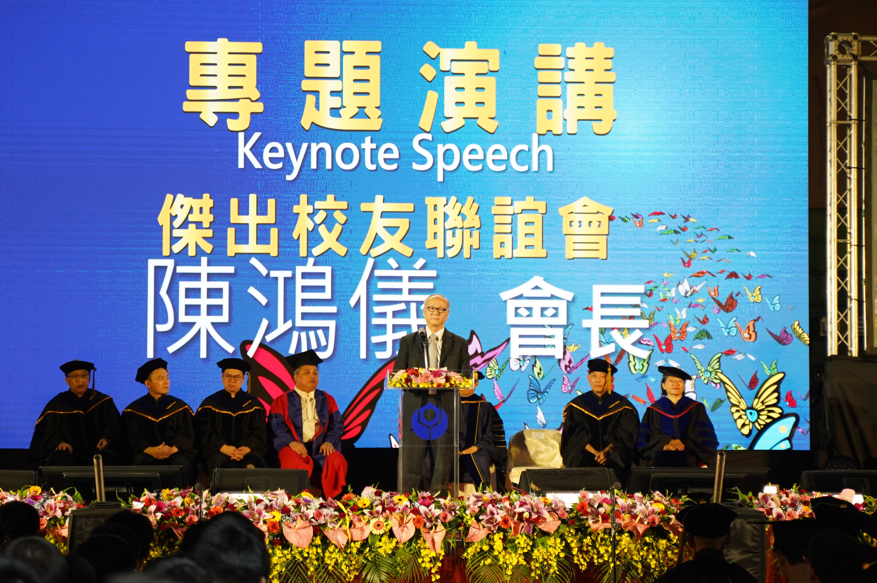 President Jia-Yush Yen reminded students of the challenges posed by generative artificial intelligence. He emphasized the need to learn how to use AI effectively and ethically, warning that while AI can help modify data, it also absorbs the hard-earned knowledge from research. Yen urged students to master AI without being deceived or manipulated by it. He also encouraged them to give back to society with a supportive and caring attitude, fostering social change and considering how to contribute more significantly.